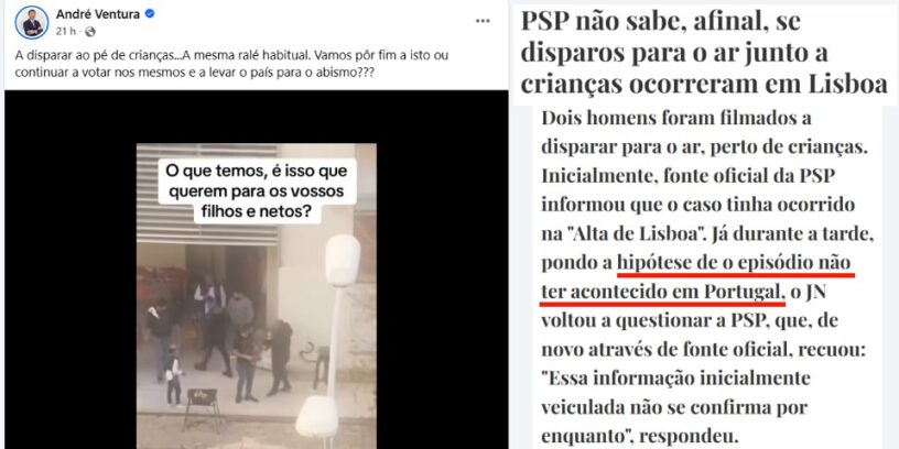 André Ventura sabe que foi a “ralé habitual” que disparou para o ar junto de crianças mas a PSP afinal não sabe se o caso aconteceu em Portugal