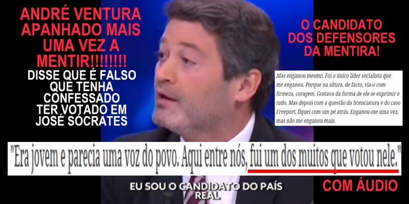 André Ventura em entrevista com João Cotrim Figueiredo para as presidenciais afirmou que era falso que tivesse votado em José Sócrates, mas a verdade é que já confessou ter votado no ex-líder socialista, pode ouvir o áudio no link em baixo.