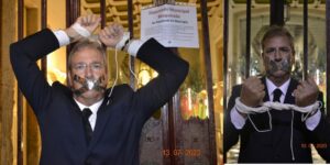 António Miguel Rios, único deputado municipal do partido de André Ventura na Póvoa de Varzim, que já foi notícia neste blogue quando supostamente a líder da concelhia o tentou substituir pelo seu marido na Assembleia Municipal, e quando durante uma sessão autárquica afirmou que Salazar proibiu o fascismo e que o PCP devia ser ilegalizado, … Continue a ler Autarca único do Chega na Póvoa de Varzim amarrou-se aos portões da Câmara em protesto por ter sido banido do Facebook do município
