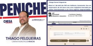 Thiago Soares Felgueiras, nascido em Valência, Venezuela, candidato do Chega a Presidente da Câmara Municipal de Peniche tem o nome na lista dos devedores do Fisco referente a Contribuintes Singulares – Devedores de 7.500 a 25.000 euros. O Correio da Manhã, que confirmou que o valor em dívida é superior a 10 mil euros, confrontou … Continue a ler Candidato do Chega a Presidente da Câmara de Peniche tem o nome na lista dos devedores do Fisco