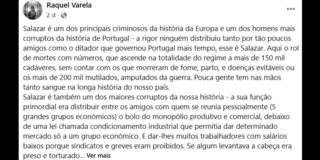 Raquel Varela, professora universitária e historiadora, não tem dúvidas: “O Chega é uma organização fascista”. A especialista em temas relacionados com o mundo laboral e os direitos dos trabalhadores partilhou no Youtube a sua intervenção na CNN no dia 27 de Outubro de 2025, no programa “Arena”, para comentar a defesa do ditadora Salazar pelo … Continue a ler Historiadora não tem dúvidas “O Chega é uma organização fascista” e “Salazar é um dos principais criminosos da história da Europa”