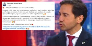 Depois de André Ventura ter afirmado que “eram precisos três Salazares para pôr Portugal na ordem”, Pedro Frazão afirmou em entrevista à TVI que discordava do dono do Chega. O vice-presidente do Chega, que já foi condenado em tribunal por fake news, disse que “Não são precisos três Salazares, porque nós já temos o André … Continue a ler Vice-presidente do Chega diz que Portugal já tem um Salazar: “André Ventura vale mais do que 3 ou 4 Salazares”
