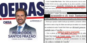 Pedro Saraiva Gonçalves dos Santos Frazão, candidato do partido de André Ventura a Presidente da Câmara Municipal de Oeiras nas Eleições Autárquicas de 12 de outubro de 2025, faltou a 13 reuniões da Câmara Municipal de Santarém enquanto vereador eleito para o mandato 2021-2025. O deputado da extrema direita, condenado no Tribunal de Cascais por … Continue a ler Vice-presidente do Chega e candidato a Presidente da Câmara de Oeiras faltou a 13 reuniões como vereador em Santarém